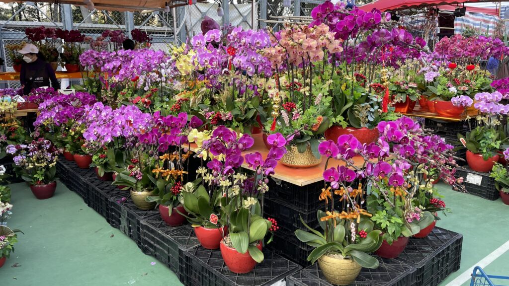 香港では、一番有名なコーズウェイベイのヴィクトリアパークのほかに、旺角のフラワーマーケット、元朗など14か所の花市場があり、旧正月当日(2月17日)の朝まで7日間営業しています。