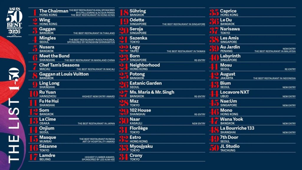 ASIA’S 50 BEST RESTAURANTS 2026