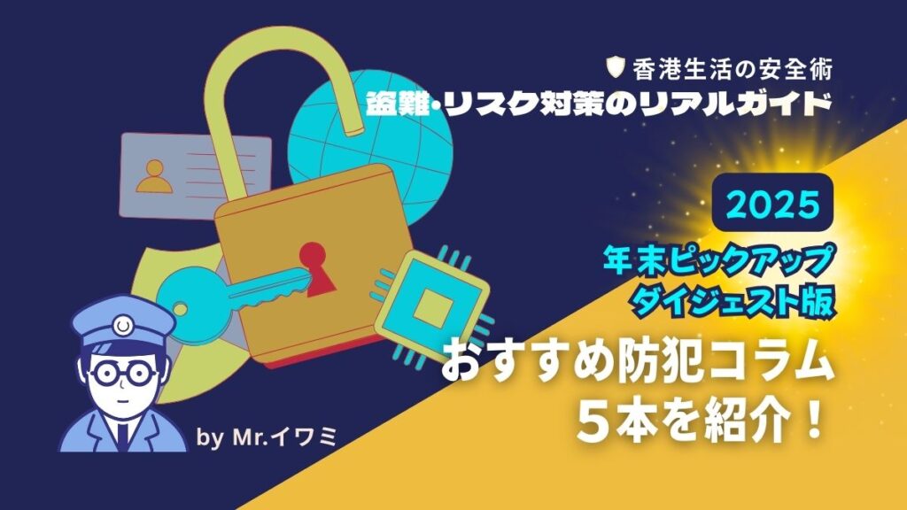 【2025年 ピックアップダイジェスト!】香港生活の安全術!盗難・リスク対策のリアルガイド 【香港生活の安全術!盗難・リスク対策のリアルガイド 】香港で生活する皆さんに向けたセキュリティコラム。2025年は全18回お届けさせて頂きました。今回は、皆さ... -
