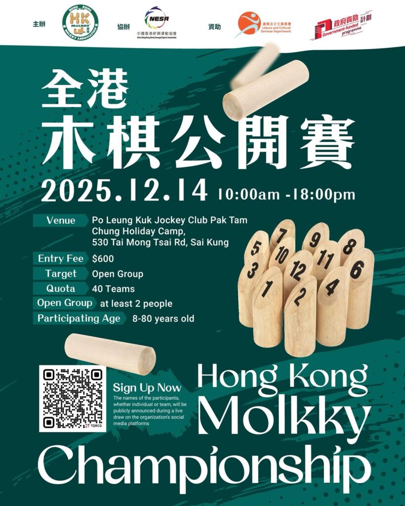 香港最大のモルック大会である「香港オープン」の開催が12/14(日)に決まりました。