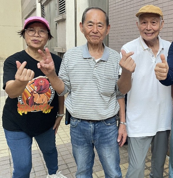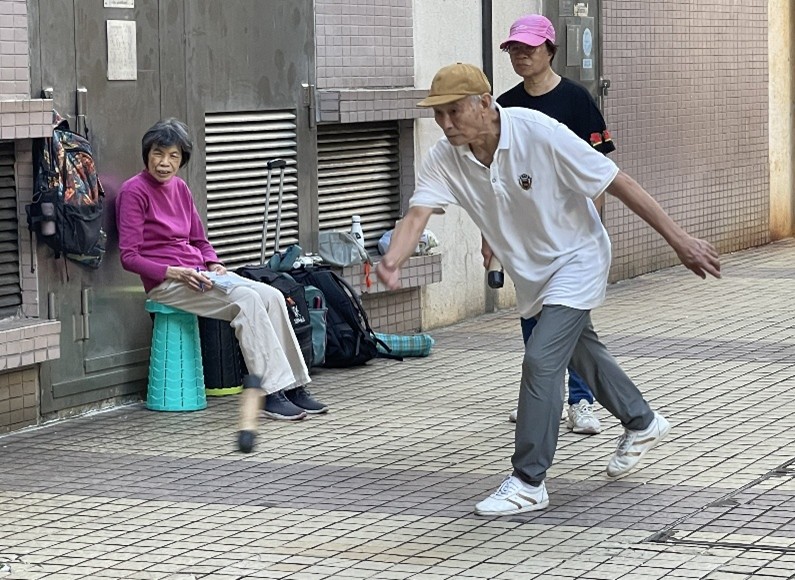 慣れた様子ですたすた歩くToyo氏についていくと、マンションの棟と棟に挟まれた幅5mぐらいの通路の先に、お年寄りたちの集団が見えた。