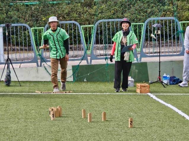 そして、日本モルック協会からは、日本モルック協会会長の八ツ賀秀一さん、その奥様であり、国際モルック連盟理事の八ツ賀千穂さんがペアチームで参加してくれました。
