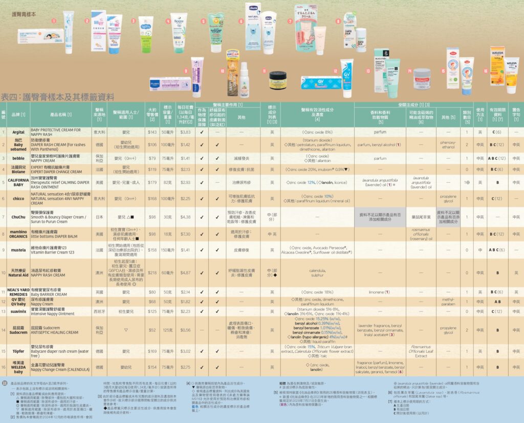 消費者委員会は、市販されている16種類のおむつクリームを収集し、ラベルをレビューし、記載されている成分を分析しました。