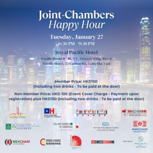 複数の在港商工会議所が合同で開催する「Joint-Chambers Happy Hour」 本イベントは、商工会議所メンバーおよび非会員が参加可能なビジネスネットワーキングを目的とし…