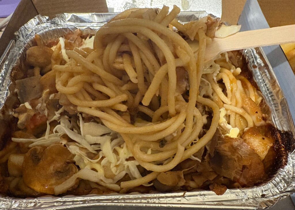 正直これって美味しいの…?って半信半疑でした。感想としては意外と美味しいです!普通の焼きそばでは馴染みのないマッシュルームもパスタだからこそ入っていたりするのも珍しくて面白いです。シーフードがぎっしり入っていて食感も楽しいです。