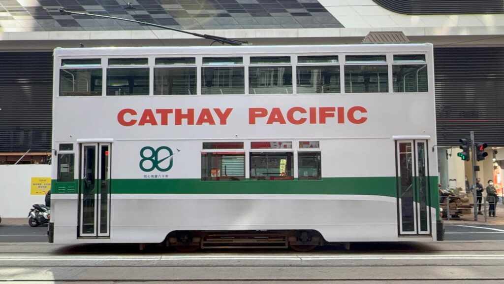 キャセイパシフィック航空は創立80周年を記念し、歴代機体デザインを施した特別トラム4台を香港島で運行しています。クラシック機「ベッツィー」の銀色機体、コンベア880の緑白ストライプ、「レタスリーフサンドイッチ」塗装、現行のブラッシュウィングなど、象徴的な意匠が街中を走り、2月19日まで楽しめます。
