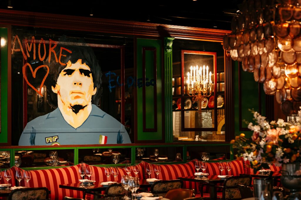 映画の世界観を感じる華やかな空間「Casa Sophia Loren」で、特別な夜を演出。この時季提供されるディナーセットは前菜1種、メインはラムシャンクや牛テンダーロインなどのラインナップから、デザートはティラミスなどから選べます。クラシックなイタリア料理で聖なる夜をワイワイ過ごそう!