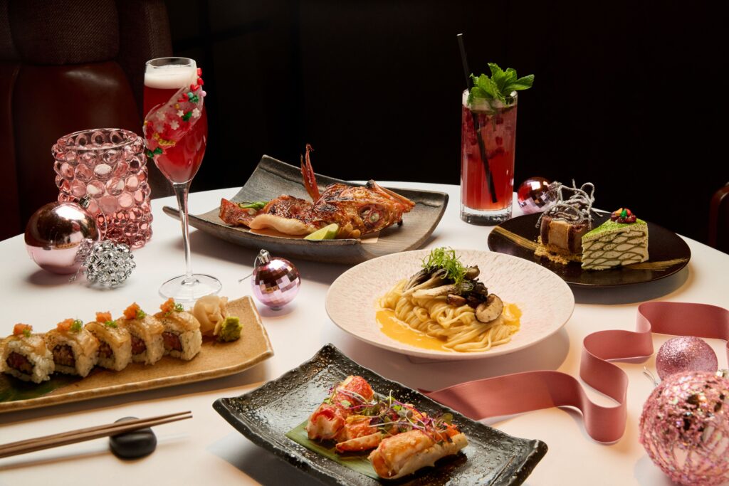 ホテルダイニングの上質さをカジュアルに楽しめる「UMAMI」では、クリスマスイブと当日に特別なセットディナーを提供。キャビアや新鮮な海鮮、鹿児島A5和牛、アワビなど、プレミアム食材をふんだんに使った贅沢なラインナップです。洗練された和のスタイルで、五感を刺激する逸品が並びます。