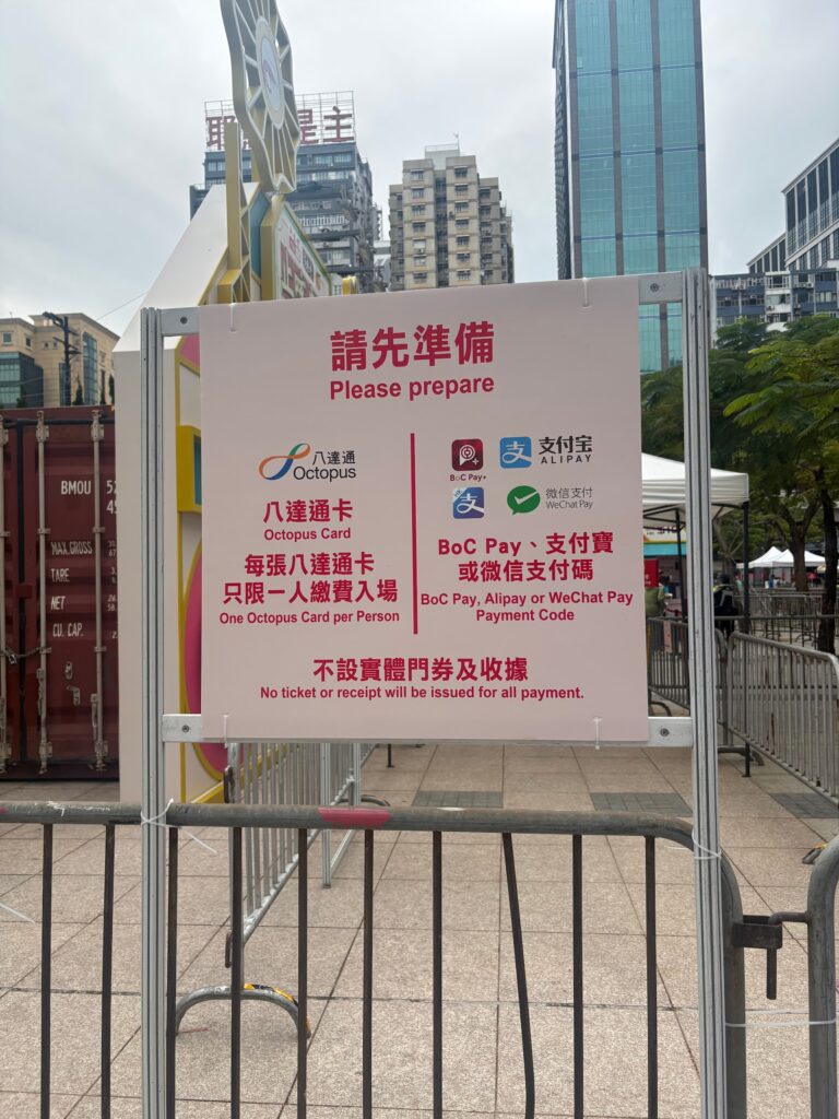 入口で入場料を払って入ります。お値段は10香港ドル(約200円)。オクトパスカードやAlipayなどが使用できます