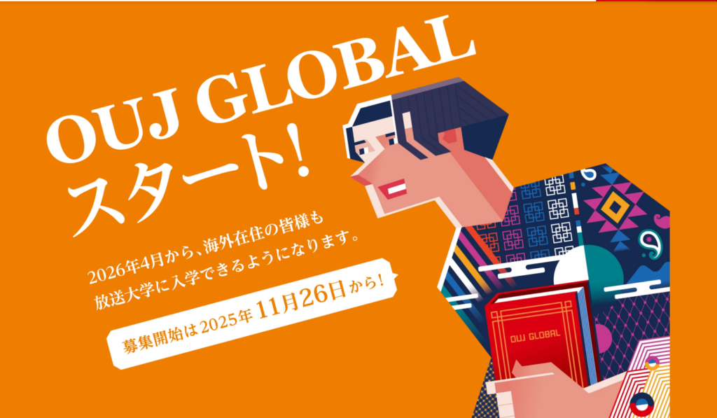 放送大学(The Open University of Japan)が海外在住者を受け入れる「OUJ GLOBAL」。入学試験なし、1科目からOK、在学は6カ月(1学期)。