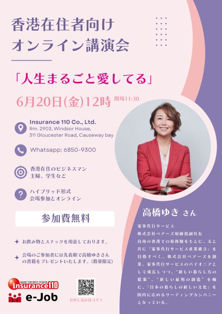 香港在住者向けオンライン講演会「人生まるごと愛してる」