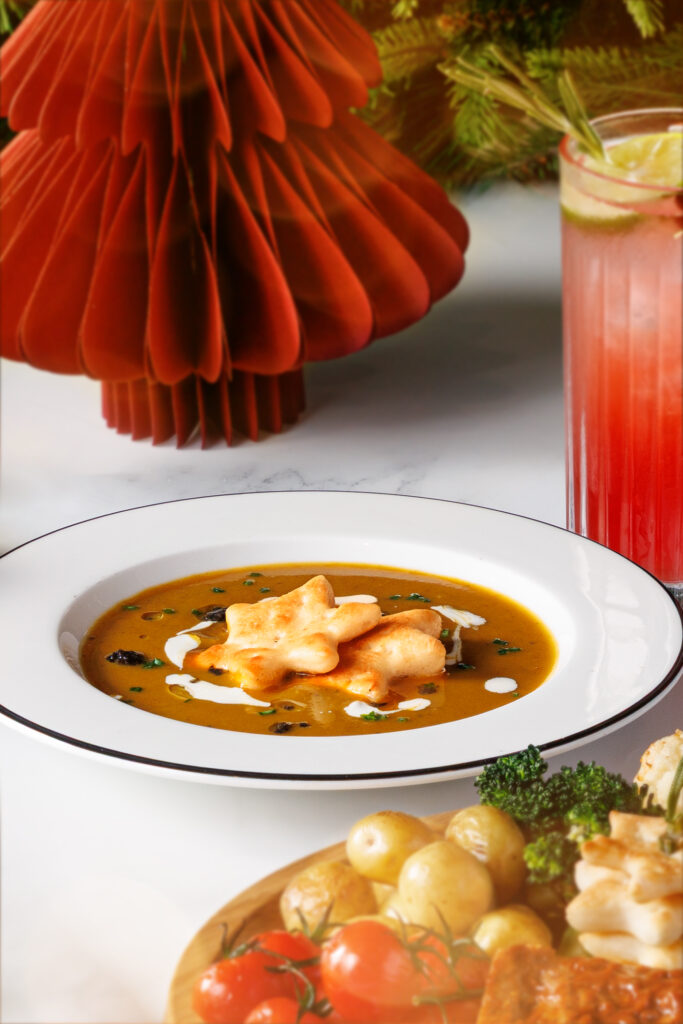 甘栗とパンプキンをなめらかなスープに仕上げ、イタリア産トリュフパテで香りをプラス。星型ブレッド付き。