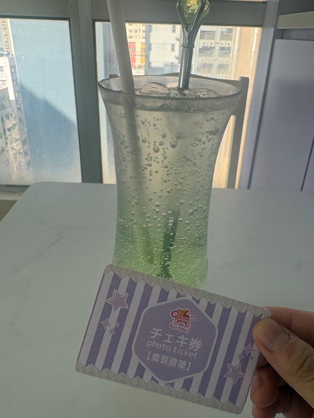 今回はドリンクとメイン料理とチェキのセットを注文しました。お値段は165香港ドル(約3300円)でした。