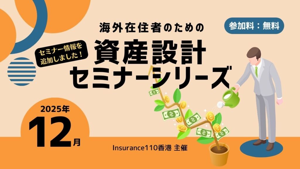 海外で暮らす日本人のお金の悩みに対応! Insurance110主催、大好評の海外在住者向け無料セミナーシリーズが開幕! 香港・アジア在住だからこそ知っておくべき金融戦略を、各分野の専門家が徹底解説します。年金対策から国際資産運用、相続プランニングま... -