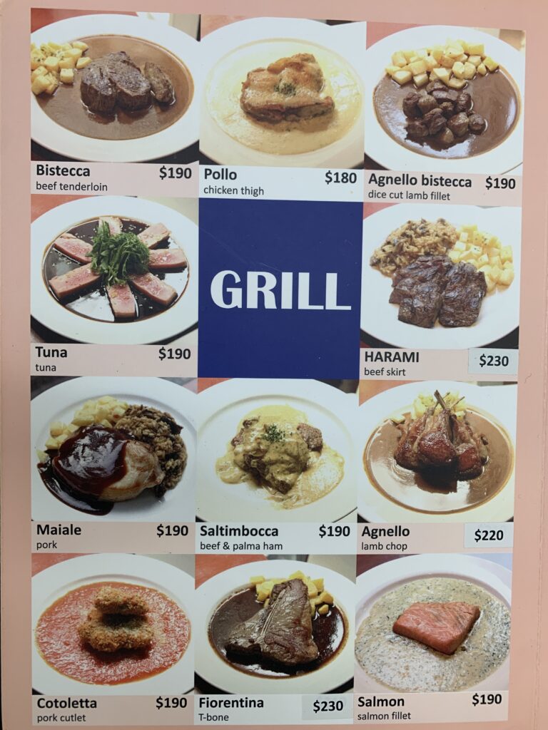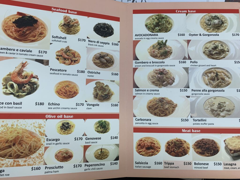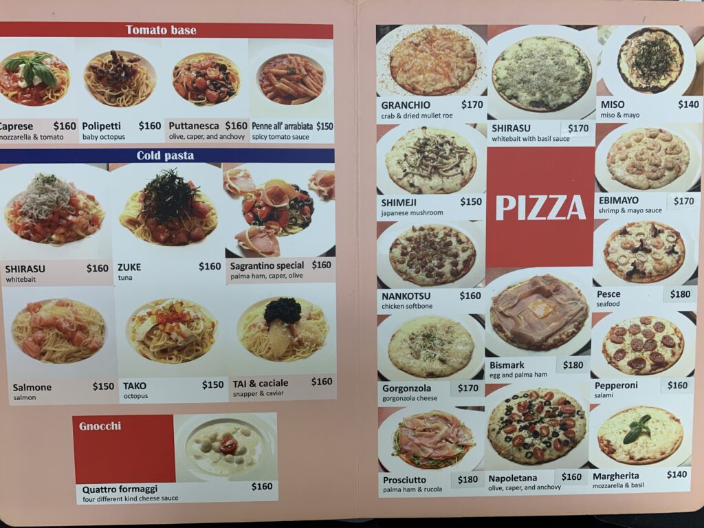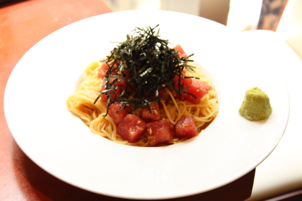 伝統料理に固執せず、「競争したら勝てない独自のメニューを揃えた方が良い」と考え、日本的な発想を取り入れたパスタや創作料理を多数展開しています。フュージョンは同店の核です。